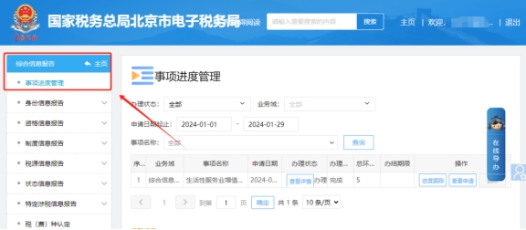 二、綜合信息報告—事項進度管理模塊查詢受理結果,若審核通過。