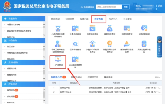 二、我要查詢—一戶式查詢—申報(bào)信息查詢—逾期未申報(bào)信息查詢,調(diào)整查詢條件查看。