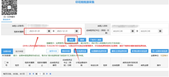 六、新增稅源信息保存成功后系統(tǒng)自動(dòng)返回按期申報(bào)界面,根據(jù)查詢條件,選擇稅款所屬期2023年1月1日至2023年12月31日后點(diǎn)擊【查詢】。
