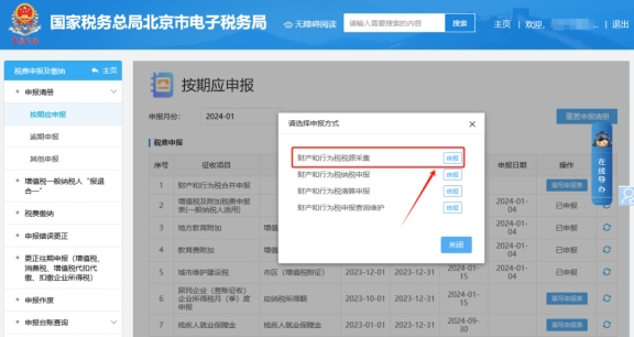 答、您好,請(qǐng)您點(diǎn)擊【我要辦稅】—【稅費(fèi)申報(bào)及繳納】—【按期應(yīng)申報(bào)】—【財(cái)產(chǎn)和行為稅合并申報(bào)】