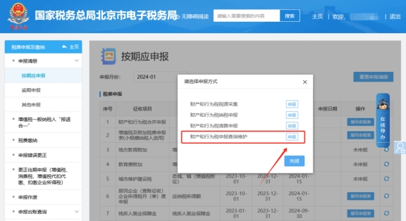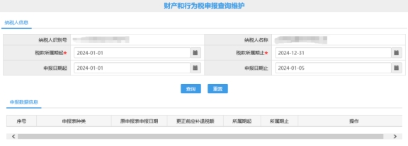 三、再選擇【財(cái)產(chǎn)和行為稅申報(bào)查詢維護(hù)】,點(diǎn)擊右方的申報(bào)。