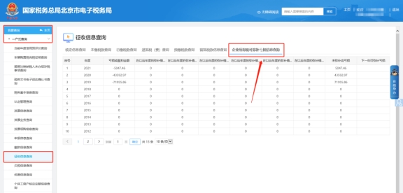 答:您好,請(qǐng)您點(diǎn)擊【我要查詢】—【一戶式查詢】—【征收信息查詢】在此界面查看企業(yè)所得稅可彌補(bǔ)虧損信息查詢。