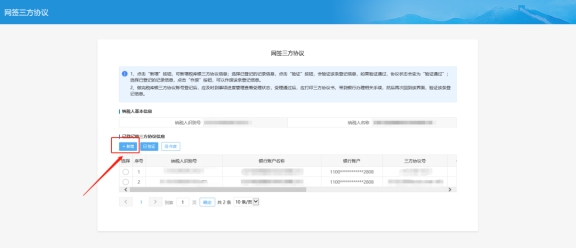(3)簽訂:【我要辦稅】—【綜合信息報告】—【制度信息報告】—【網(wǎng)簽三方協(xié)議】新增-選擇銀行信息點擊確認-自動帶出清算銀行行號、開戶銀行行號,選擇批扣標(biāo)志(請根據(jù)實際需求判斷選擇),點擊右上角保存-下一步-會看到一個回執(zhí),點擊關(guān)閉-重新返回到網(wǎng)簽三方協(xié)議頁面-選擇未驗證的協(xié)議-點擊“驗證”-協(xié)議狀態(tài)顯示“驗證通過”后協(xié)議即簽訂成功。