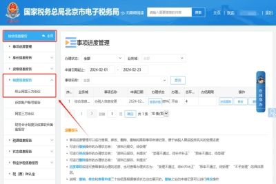 1.終止三方協(xié)議:【我要辦稅】—【綜合信息報告】 — 【制度信息報告】 — 【終止網(wǎng)簽三方協(xié)議】 — 選擇需要終止的協(xié)議 — 點擊“打印申請表” — 打印出協(xié)議終止書留存;再次選擇要終止的信息 — 點擊“終止” — 協(xié)議狀態(tài)顯示“終止協(xié)議”則終止成功;(如沒有簽訂三方協(xié)議或三方已經(jīng)終止了,不用操作這一步)
