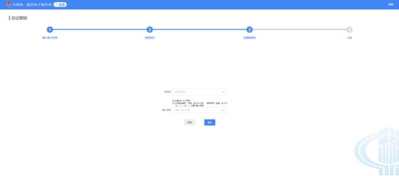 完成身份驗(yàn)證后即可設(shè)置新密碼,如下圖所示: