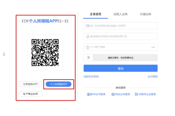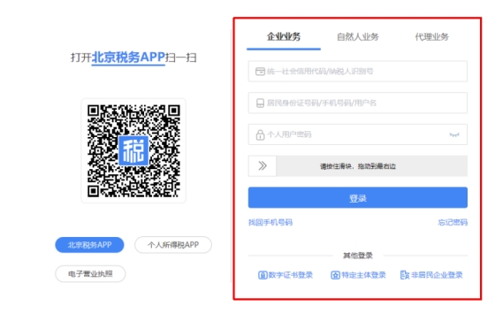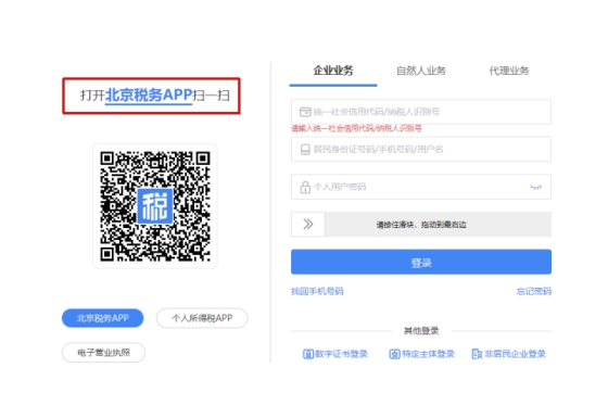 支持“電子營(yíng)業(yè)執(zhí)照”“北京稅務(wù)APP”或“個(gè)人所得稅APP”掃碼方式登錄。