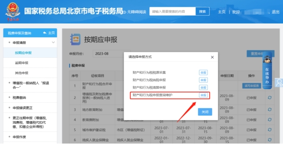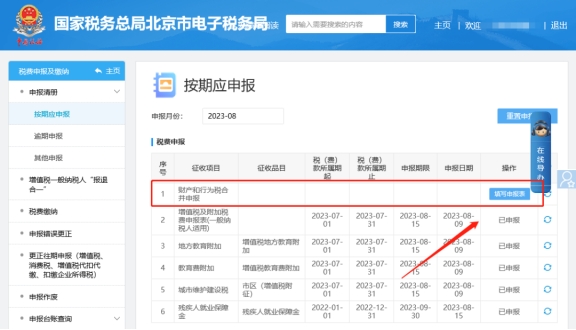 二、稅費(fèi)申報(bào)及繳納—申報(bào)清冊(cè)—按期應(yīng)申報(bào)—財(cái)產(chǎn)和行為稅合并申報(bào)。
