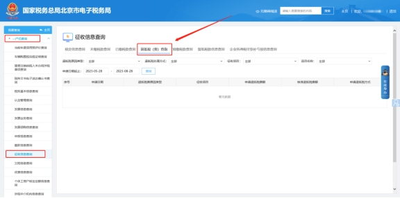 二、一戶式查詢—征收信息查詢—征收信息查詢—退(抵)稅費(fèi)查詢,在此頁(yè)面即可查詢對(duì)應(yīng)信息。