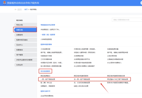 二、我要辦稅—綜合信息報告—一照一碼戶信息變更/非一照一碼戶信息變更/兩證整合個體工商戶信息變更。
