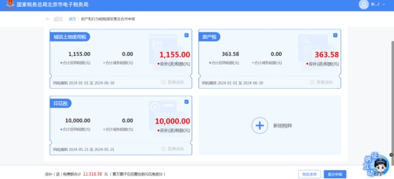 1.【我要辦稅】-【稅費(fèi)申報(bào)及繳納】-【財(cái)產(chǎn)和行為稅稅源采集及合并申報(bào)】。