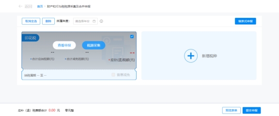 (1)自動(dòng)帶出本期應(yīng)申報(bào)的所有稅種卡片,納稅人可以自行勾選單個(gè)或多個(gè)稅種進(jìn)行申報(bào)。