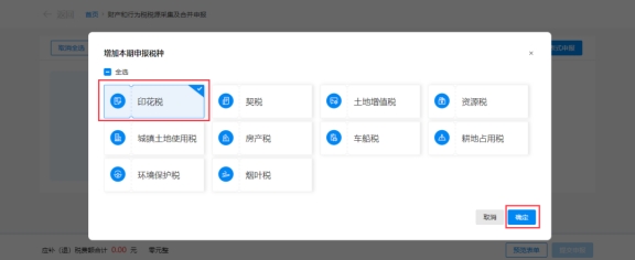 (2)勾選增加本期申報(bào)稅種:“印花稅”,點(diǎn)擊【確定】。