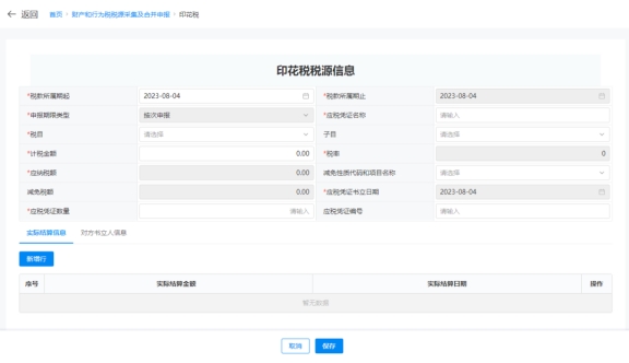 (4)點(diǎn)擊卡片上的【稅源采集】,系統(tǒng)跳轉(zhuǎn)到印花稅稅源明細(xì)表界面。
