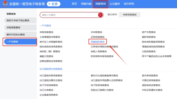 一、我要查詢—一戶式查詢—預(yù)繳稅款查詢。