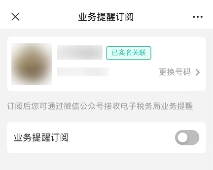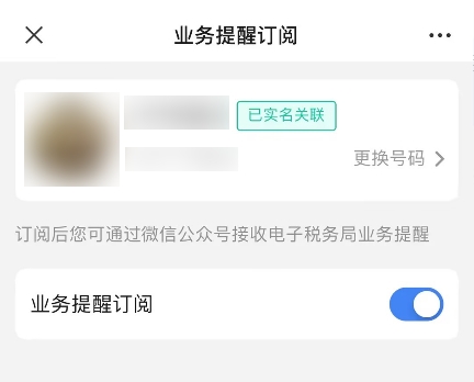 5.當完成實名關聯(lián)后,默認開啟業(yè)務提醒訂閱(可手動關閉);并且可以通過微信公眾號接收到消息推送。