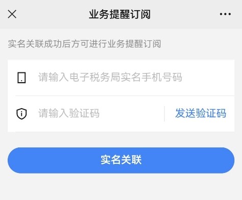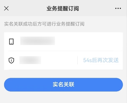 4.用戶輸入手機號、獲取并輸入驗證碼后點擊“實名關聯(lián)”,若關聯(lián)成功,跳轉(zhuǎn)回“業(yè)務提醒訂閱”界面。