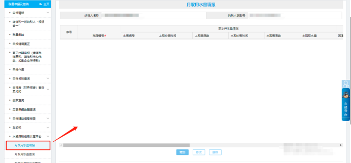 二、稅費(fèi)申報(bào)及繳納—水資源稅信息共享平臺(tái)—月取用水量填報(bào)。