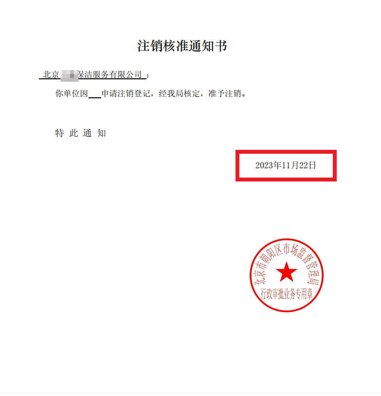 注銷(xiāo)核準(zhǔn)通知書(shū)